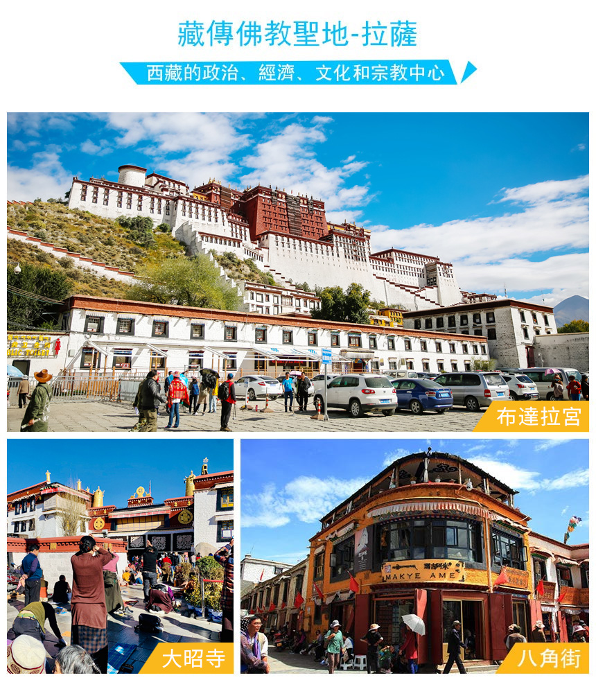 | 第2天 | 拉萨城区:布达拉宫-大昭寺-八廓街 | √ | × | × | 拉萨 |
