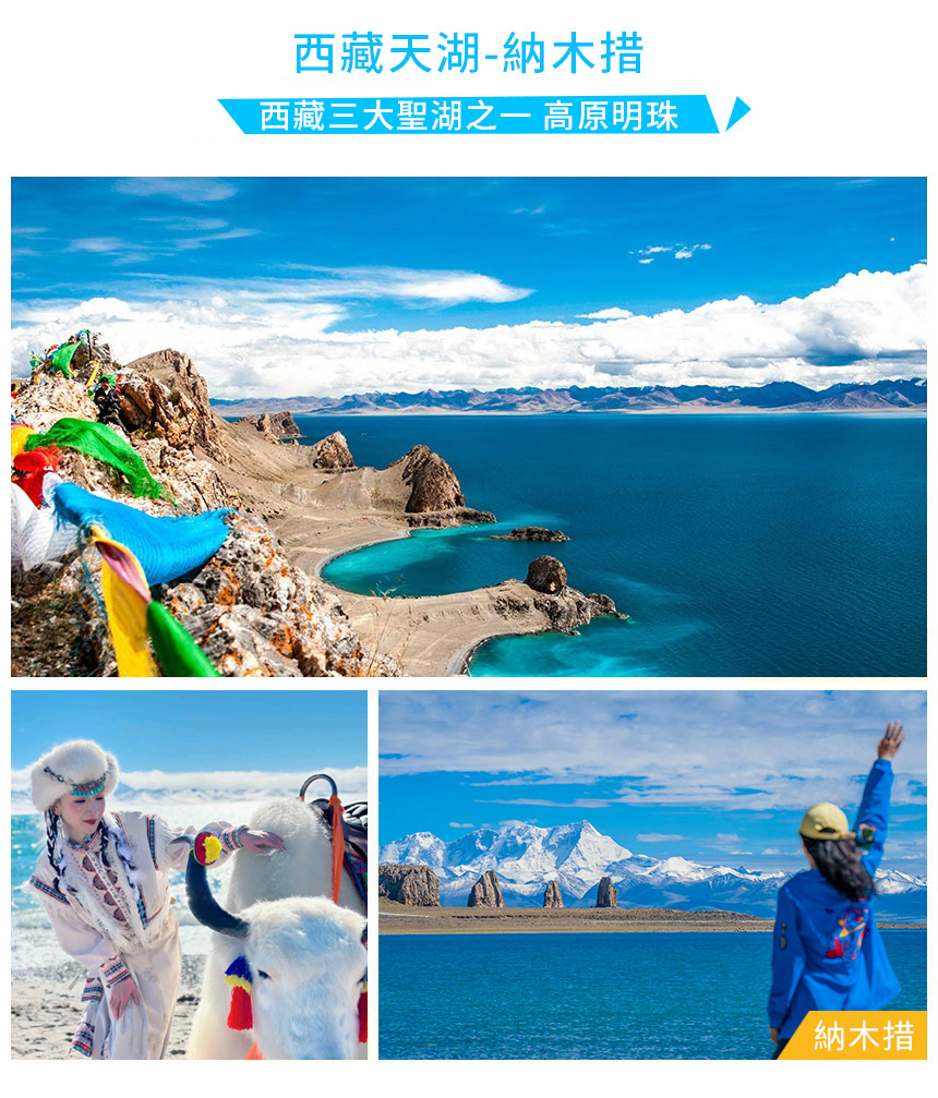 *参观说明:纳木措游览时间为40分钟,由于此景点海拔较高,氧气稀薄,故停留时间不宜过长。