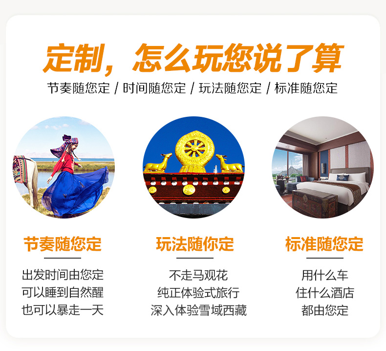 私人订制:可根据游客要求制定计划,您几位亲朋好友自己组一个团,无其他团员,游玩方面时间可控,路线自定~个性,自由,品质~舒适度高!