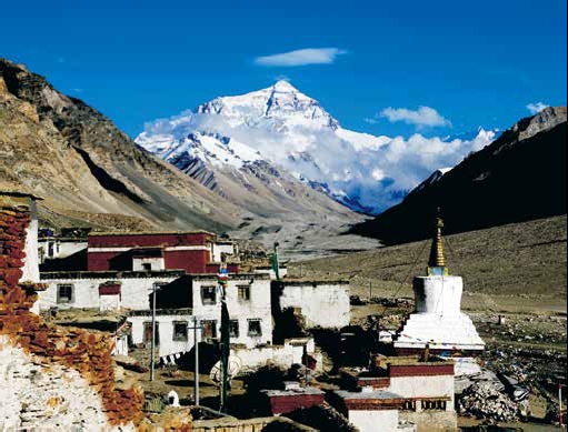 在营地附近的世界上海拔最高寺庙—绒布寺(门票自费)南望,是举世公认仰望观赏珠峰和拍摄珠峰的最佳位置。寺庙白塔耸立,五彩经幡翻飞,在此您将与世界最高峰珠穆朗玛峰共舞,有幸还可以看到有如生命之火般飘荡的珠峰旗云。珠峰行程最远只能到达绒布寺附近的【珠穆朗玛峰高程测量纪念碑】打卡点,实际状况依景区公告为主。