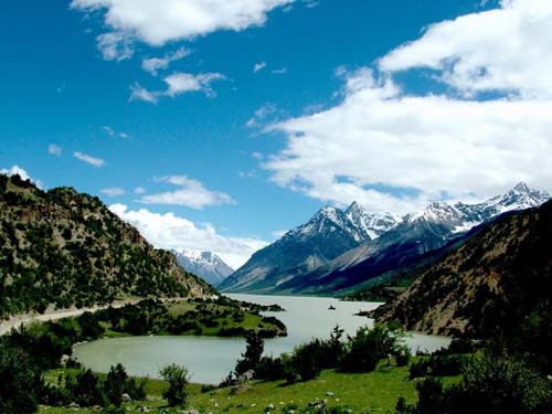 中午到打邦达,邦达(由此可分道前往川藏北线的昌都,),邦达草原上成群的牛羊,还有世界上海拔最高的民用机场(4420米)。业拉山也称(怒江山),车在公路上以之字形盘旋曲折前进,进入川藏公路拐弯最多的路段。过多拉神山时观看藏区神秘的天葬台和石刻佛像、六字箴言,下山途中田园风光景色宜人。继续前行晚上到然乌。欣赏绝色【然乌湖】。来到这里会让人躁动的心沉静下来,湖水如一面镜子般平静无澜,映衬着湖边晶莹的冰川、皑皑的雪山。(然乌湖边自由活动,摄影,可在湖边篝火晚会,烤全羊,跳锅庄)