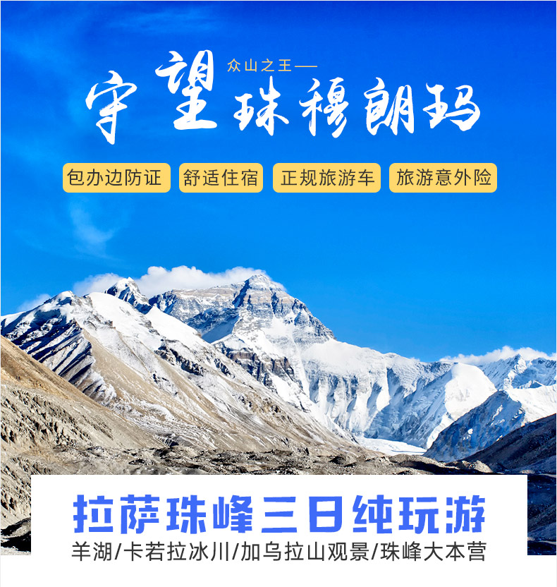 < 珠峰专线 > 【挑战经典,巅峰之旅】羊湖+日喀则+珠峰大本营3日游