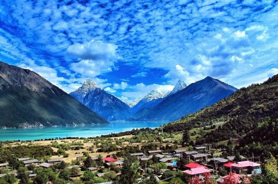 「领略西藏小江南林芝风光,体验圣湖羊卓雍措那叹为观止的美景,陶醉在蓝天白云之下,雪山、牛羊,装饰着湛蓝的圣湖。」